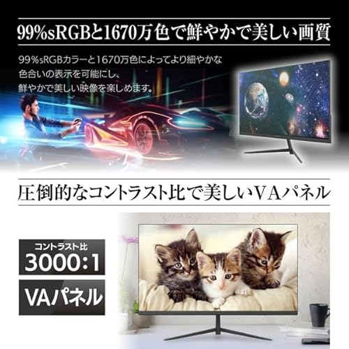 - 高コントラストのVAパネルでどの角度から見てもくっきりハッキリ鮮明な映像